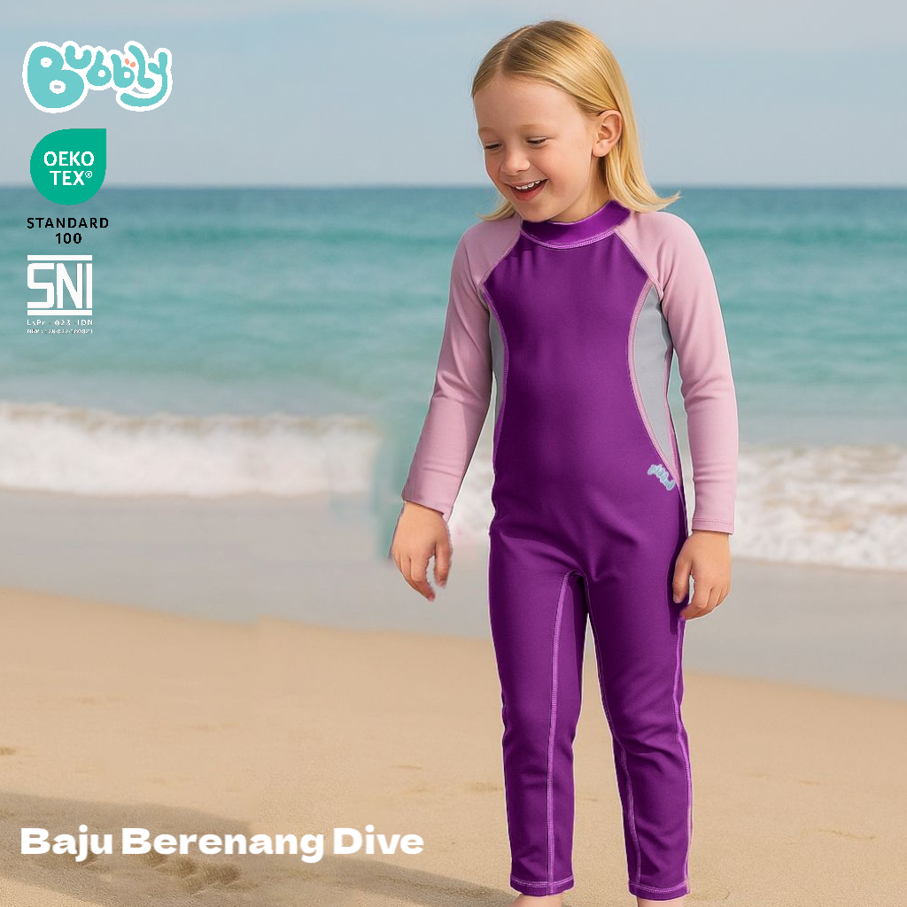 Bubbly Dive Swimwear hadir dengan desain simple yang melindungi kulit anak dari paparan sinar matahari sekaligus memberikan kenyamanan maksimal saat bermain air. Terbuat dari bahan 80% nylon dan 20% spandex, baju renangg yang ringan ketika dipakai , cepat kering, dan mudah dipakai — ideal untuk si kecil yang aktif di pantai maupun kolam renang.